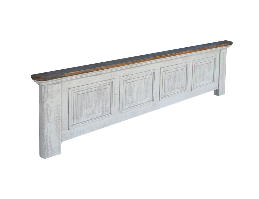 Finish is achieved through a multi-step lacquer in a weathered gray, with natural brown tops.