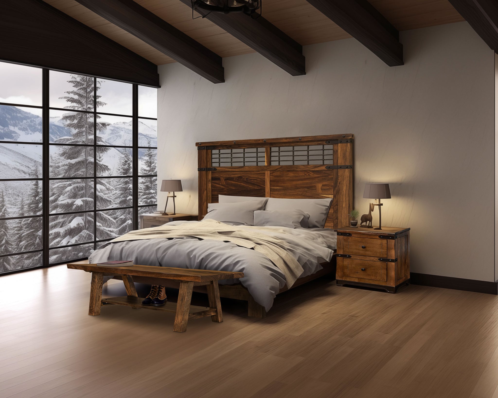Parota wood on top and sustainable mango wood on the rest of the case piece.