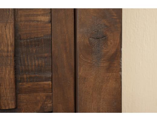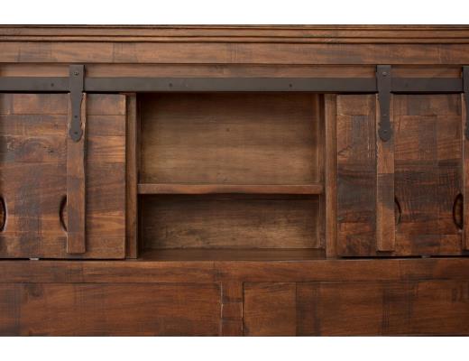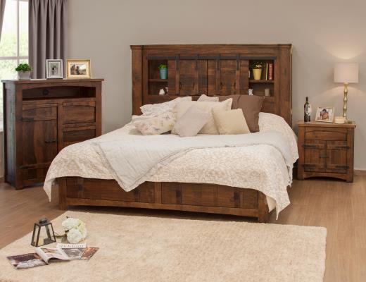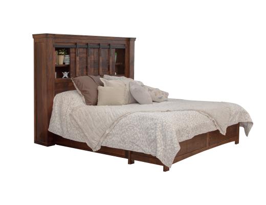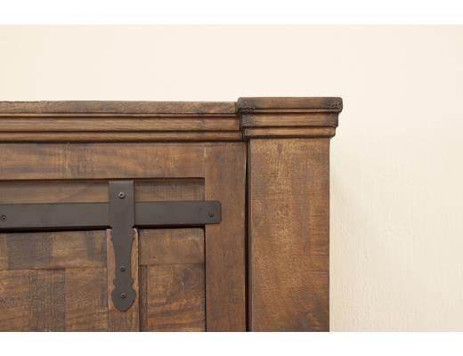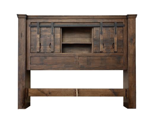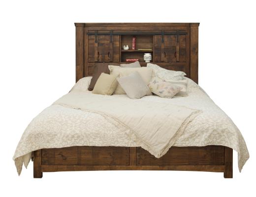 Fabricado en madera de pino maciza. El acabado se consigue mediante un lacado en varios pasos en un tono marrón intenso. La construcción de mortaja y espiga ofrece estabilidad y durabilidad. Dos puertas correderas de estilo granero ofrecen comodidad y atractivo rústico. Incluye pasacables. Estantes fijos. Disponible en tamaños Queen y King size. No requiere box spring.