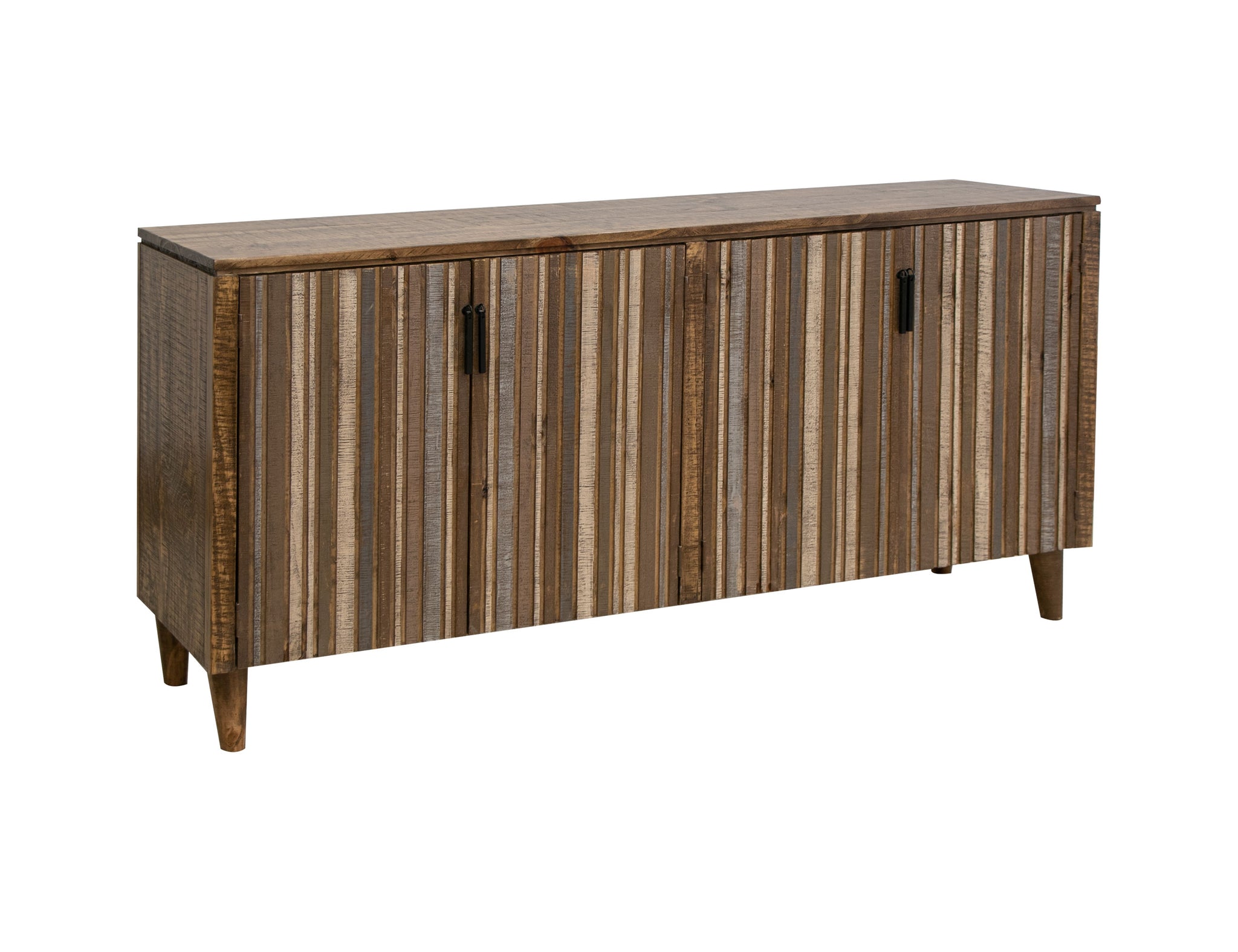 Multi-step lacquer in a soft multicolored hand-distressed finish with brown highlights.