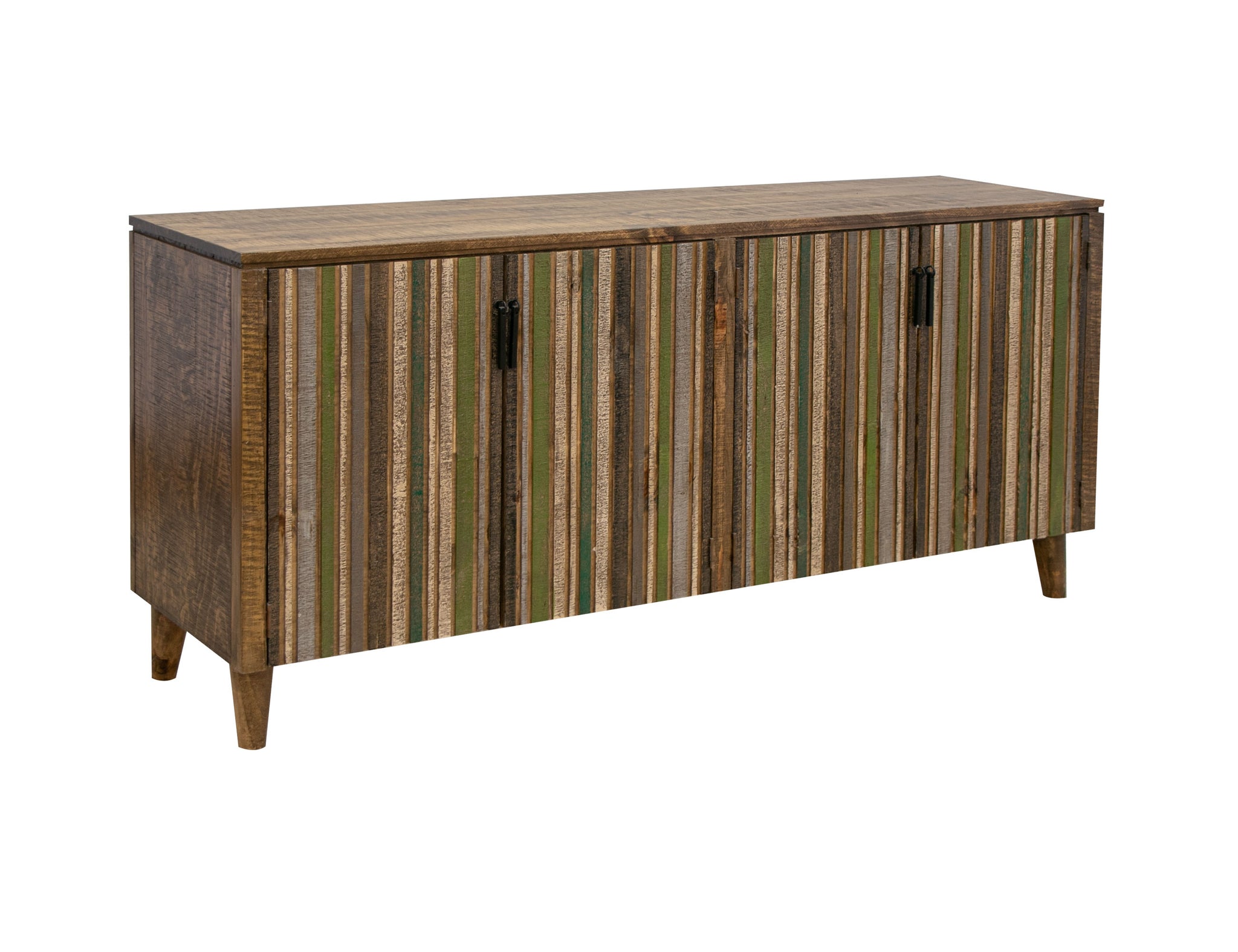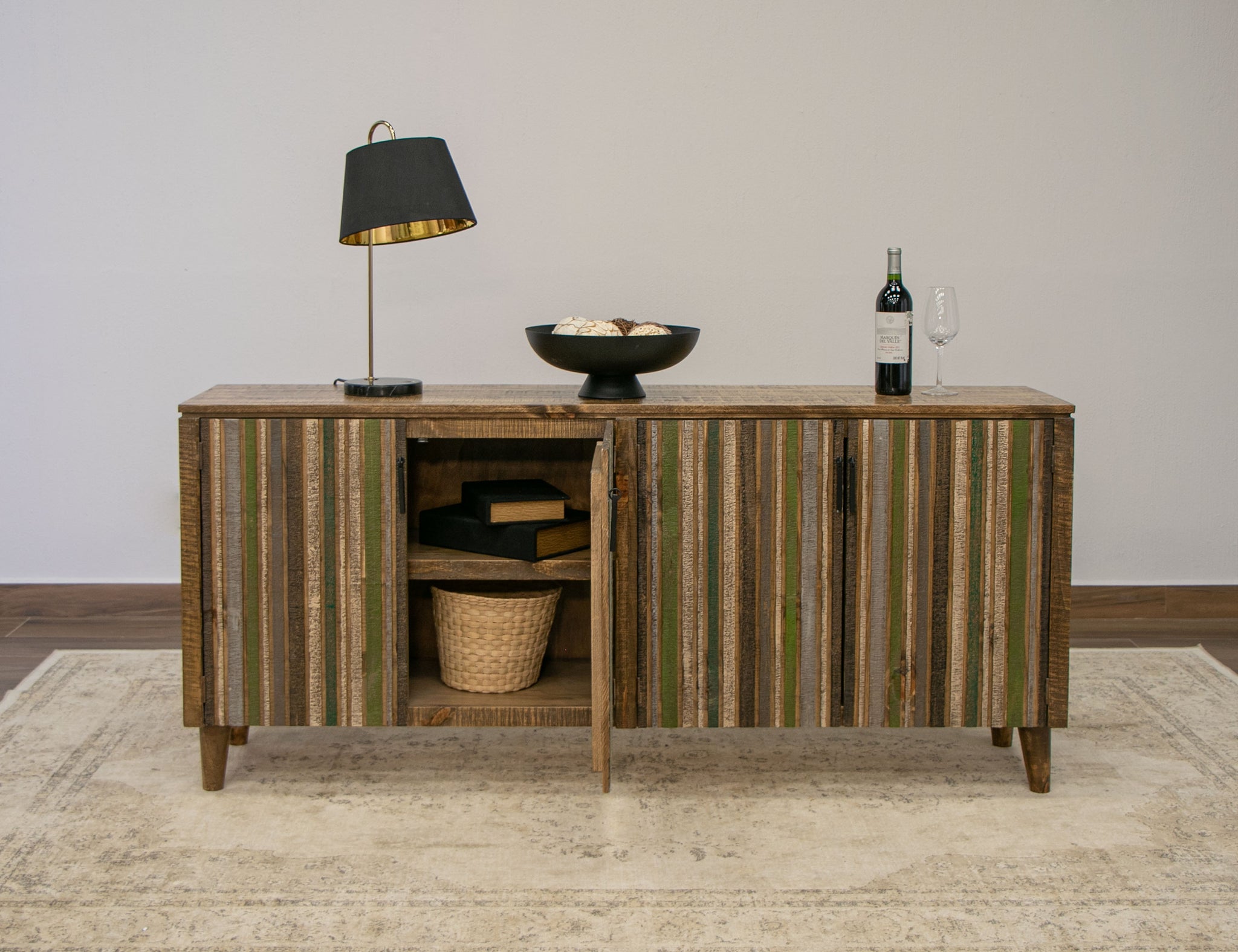 Multi-step lacquer in a soft multicolored hand-distressed finish with green highlights