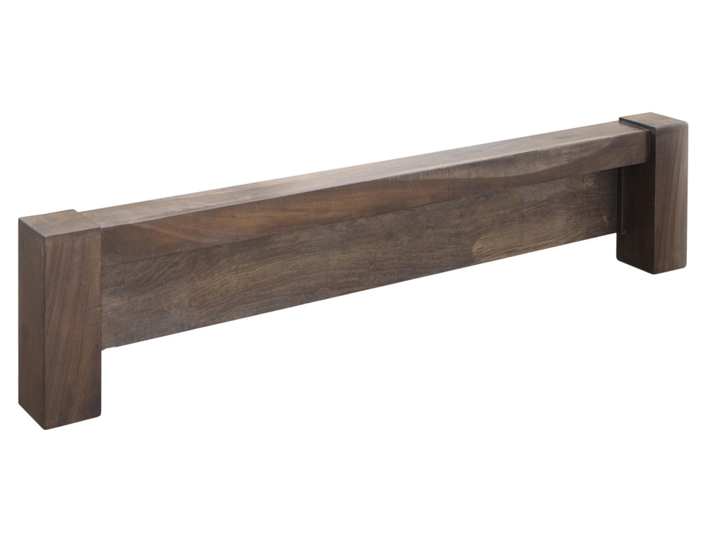 Finish is achieved through a multi-step stain with deep brown strokes on a warm gray base.