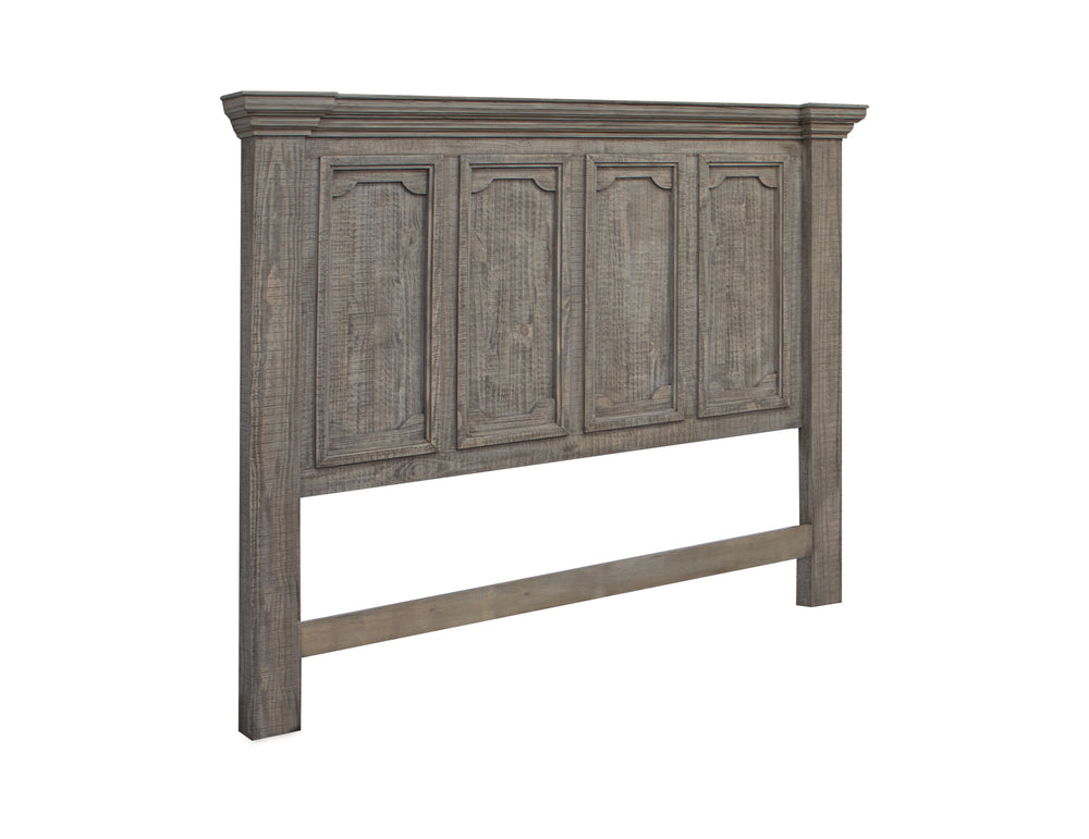 Multi-step matte lacquer, wire-brushed wood, oyster gray finish.